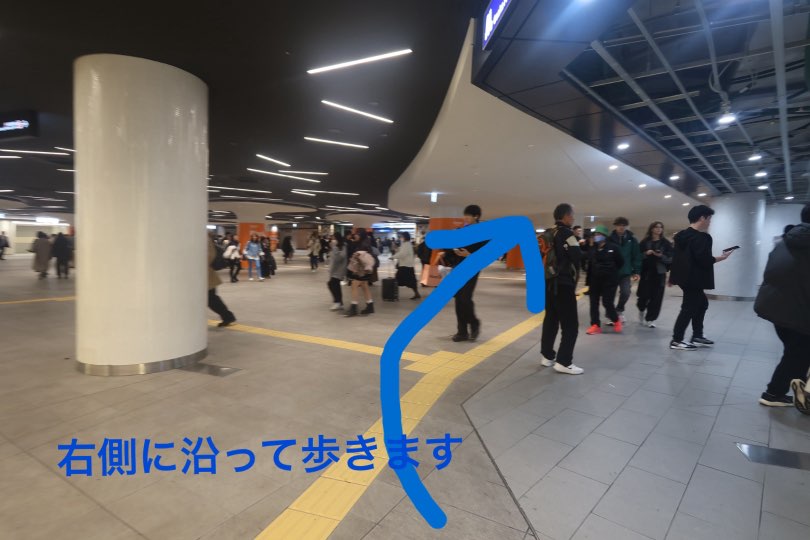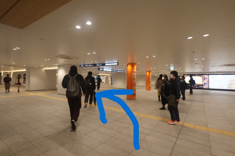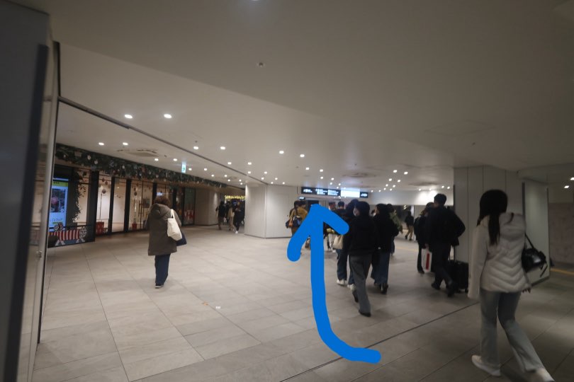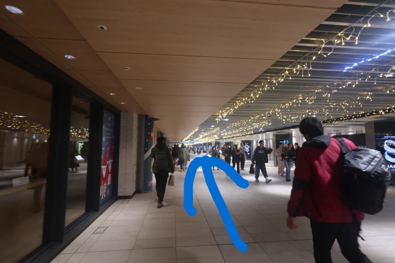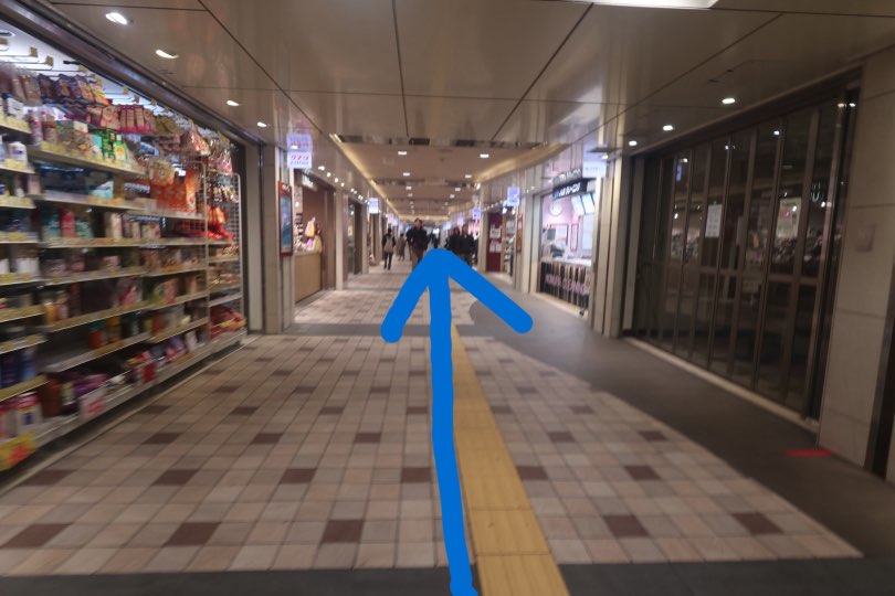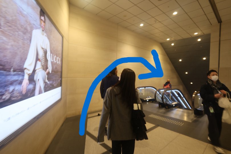 歩くと途中でエスカレーターが左手に出てくるのでおります。