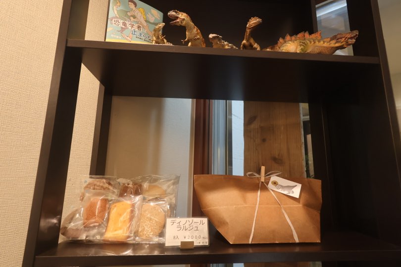 店内に入ると至る所に恐竜の置物、また恐竜のフィナンシェがありました。